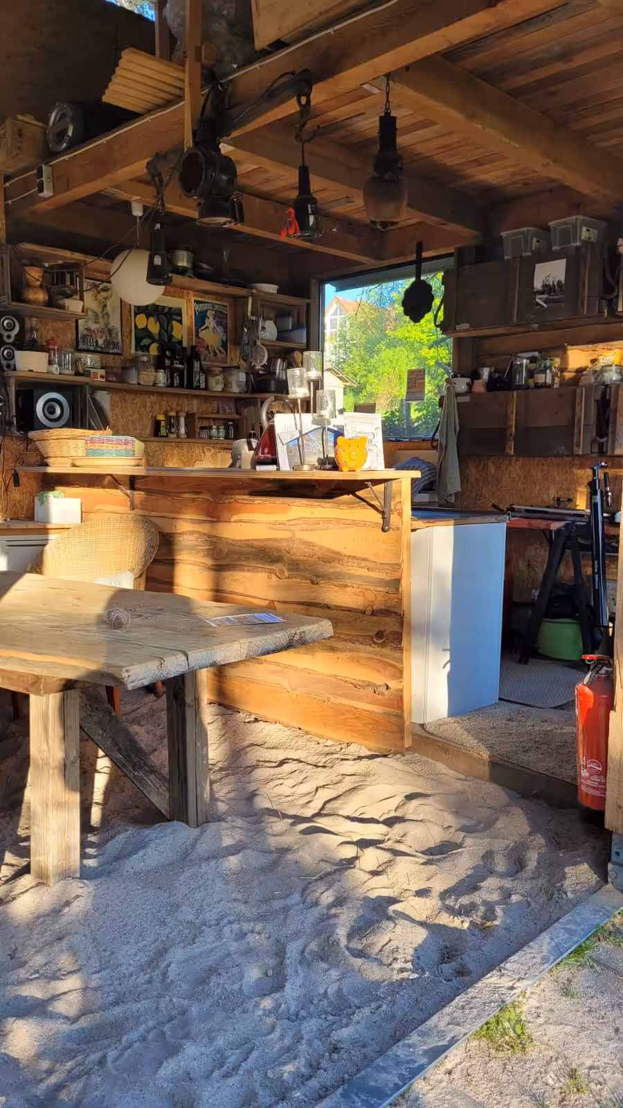 Auf dem Platz gibt es eine (kalte) Dusche, eine Komposttoilette und eine Draußenküche mit Strom und Wasser.